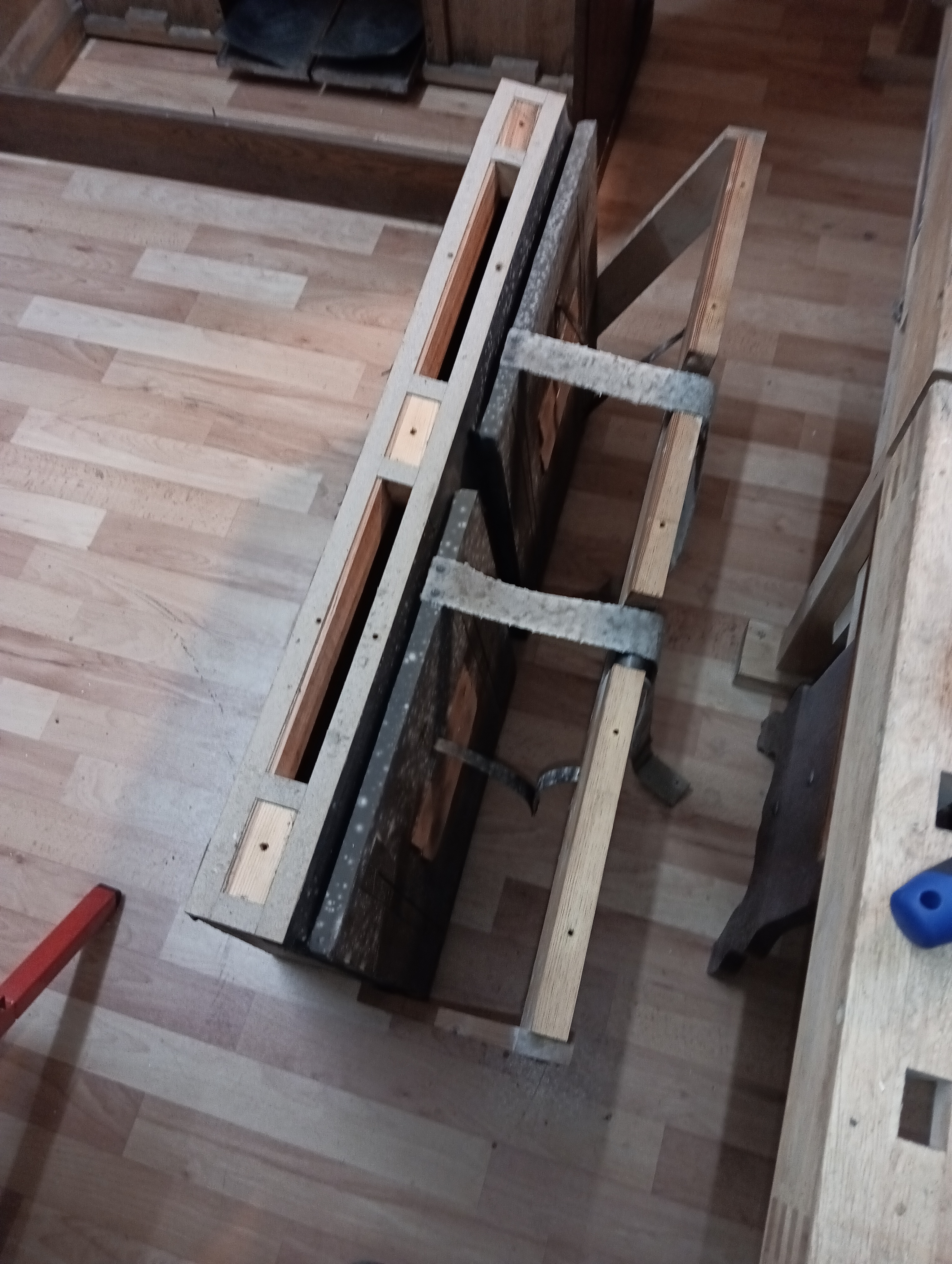 Der erste Eindruck von außen war nicht so schön. Es stand früher in einem feuchten Raum, was dem Gehäuse, dem Werk und auch dem Balg zugesetzt hat. Weiterhin waren auch schimmelähnliche Spuren vorhanden. Deshalb hatte ich das Harmonium bereits bei der Besichtigung vor Ort teilzerlegt und mit einer Rohrkamera in das Innere des Balges geschaut! Dabei zeigte sich, dass im Inneren kein Schimmel vorhanden ist! |