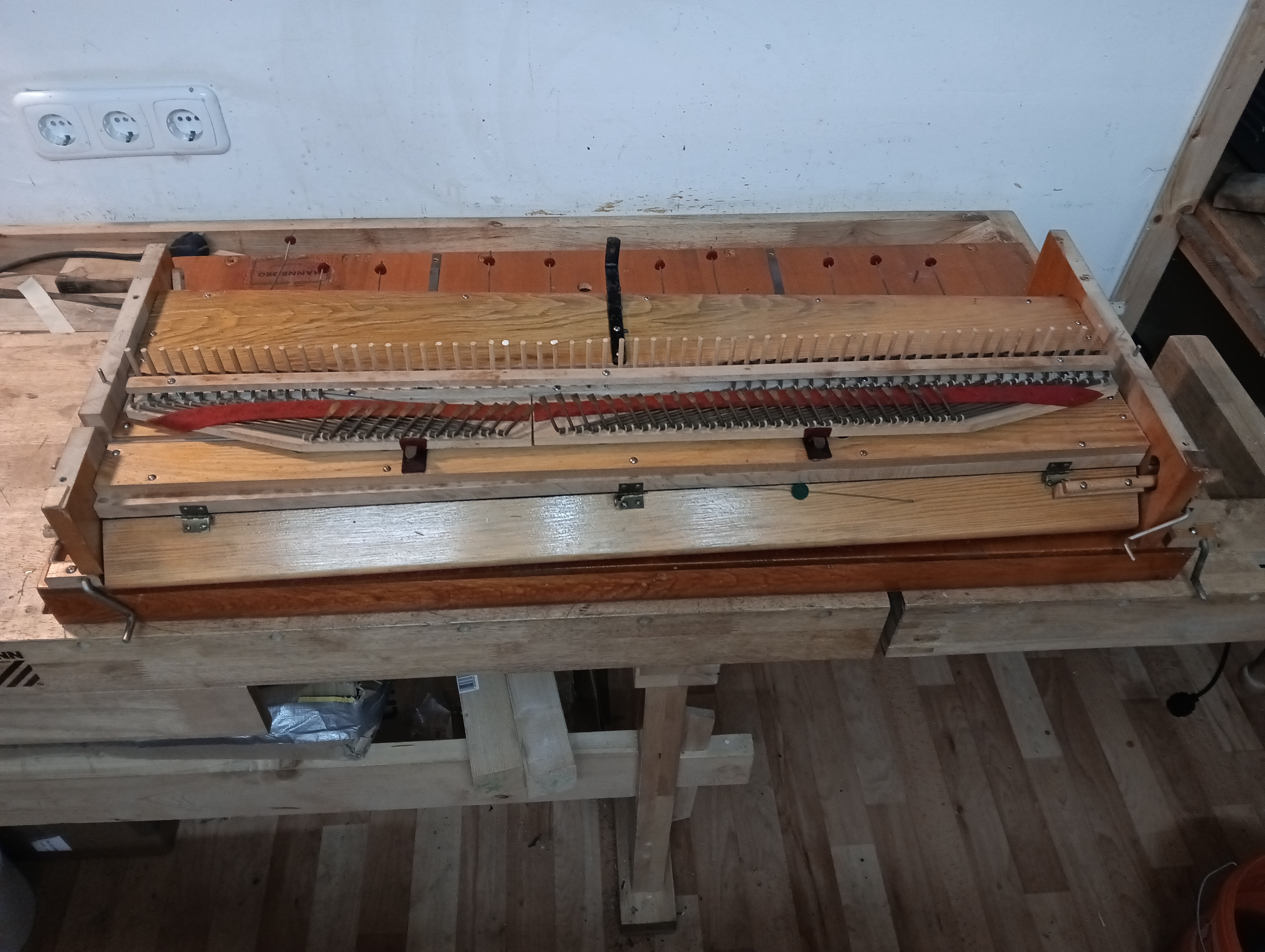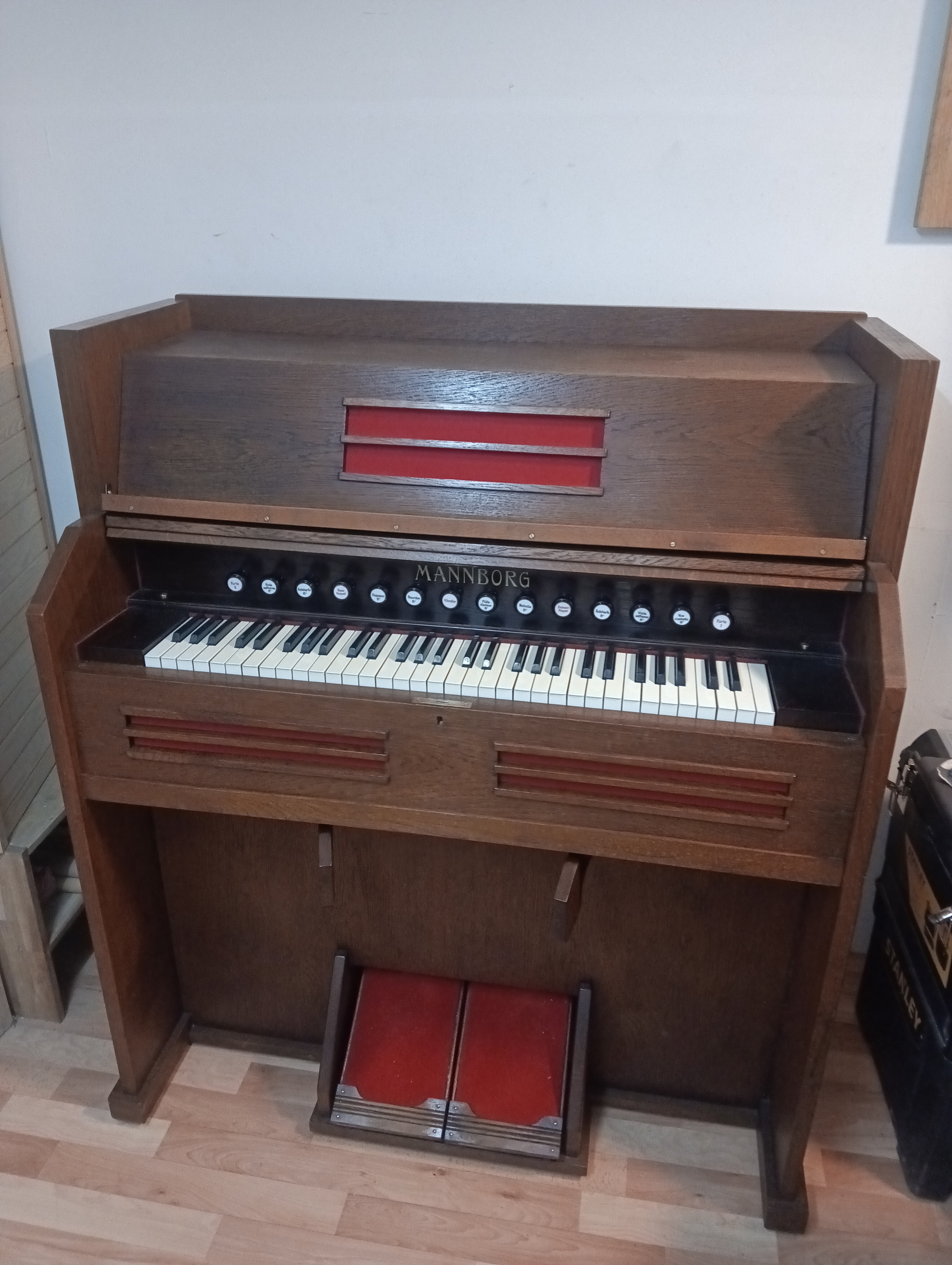 Mannborg bj.ca1953Dieses Mannborg-Harmonium von ca.1953 kam im November 2024 zur Überarbeitung in meine Werkstatt. |