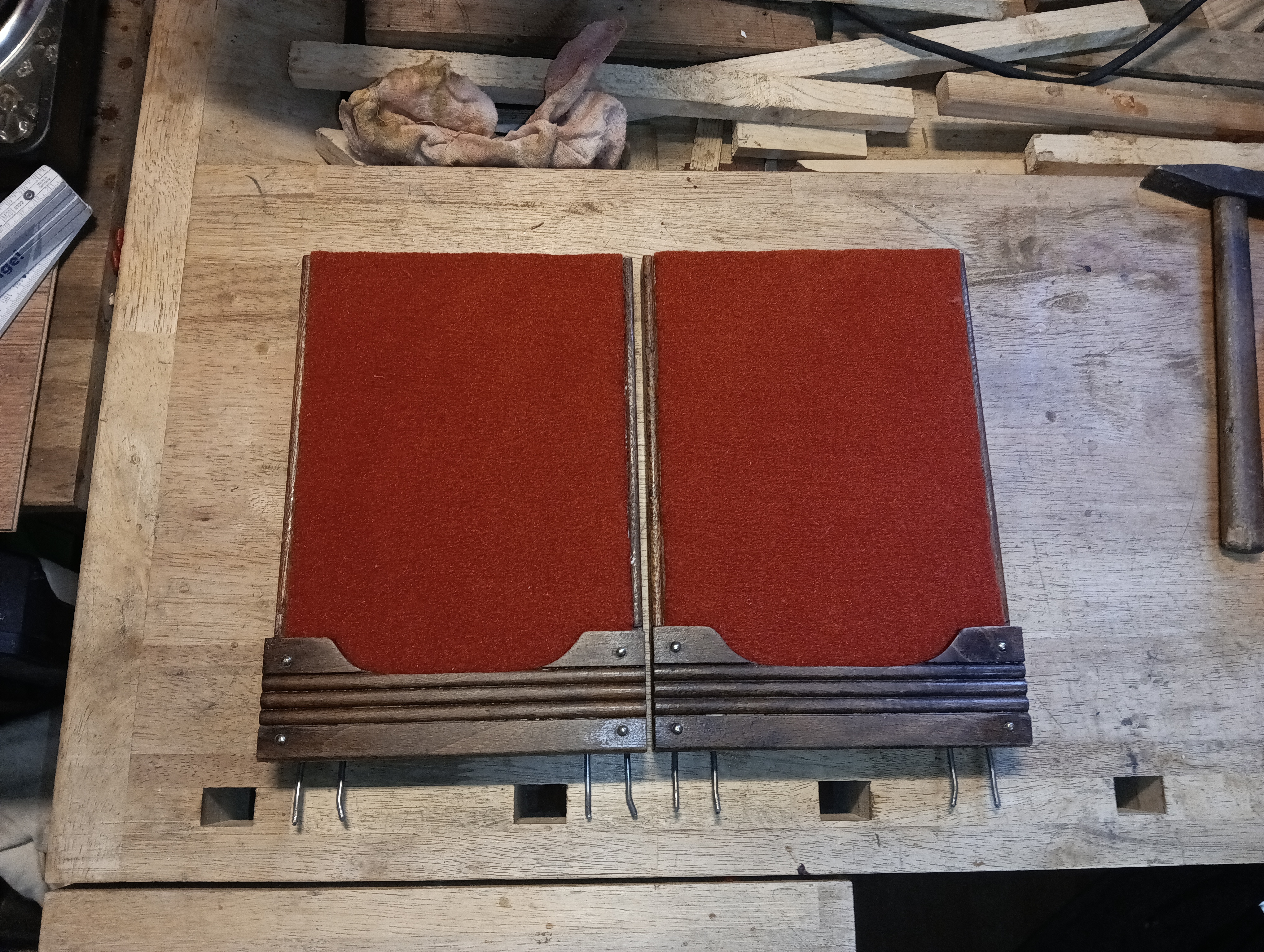 | Mit diesem Wissen ging es jetzt erstmal ans Zerlegen. Beim Zerlegen zeigte sich viel Dreck, der sich über die Jahre angesammelt hatte. Auch die alte Tuchbespannung war nicht mehr schön und wurde sauber entfernt. |